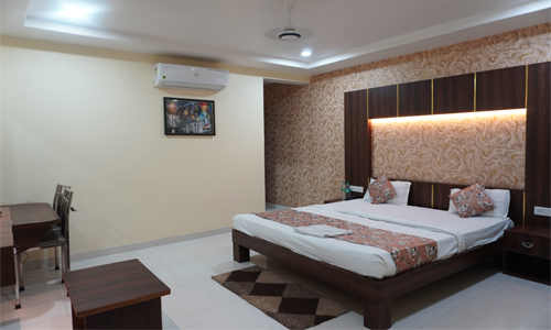 02. Comfort Premier - Escape the Bhilai heat in this climate-controlled haven. Featuring refined décor, a dedicated workspace, and a plush double bed, this room strikes the perfect balance between productivity and relaxation.