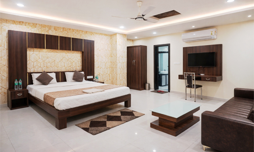 Experience luxury in our Suite Room with spacious interiors, a comfortable sofa, and modern amenities for a truly relaxing stay.